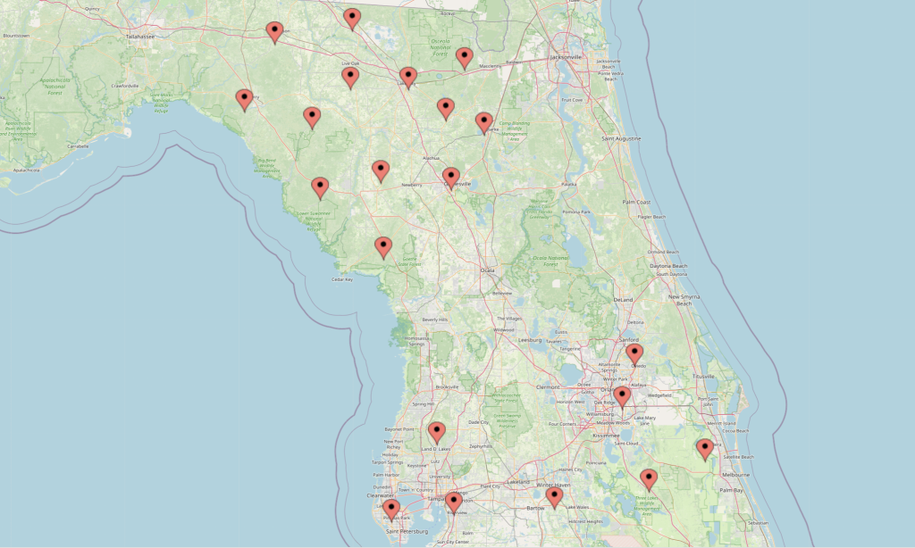 Serving Hillsborough, Pinellas, Pasco, Polk, Columbia, Dixie, Hamilton, Lafayette, Madison, Suwannee, Taylor, Alachua, Baker, Bradford, Gilchrist, Levy, Union, Osceola, Brevard, Orange, and Seminole Counties